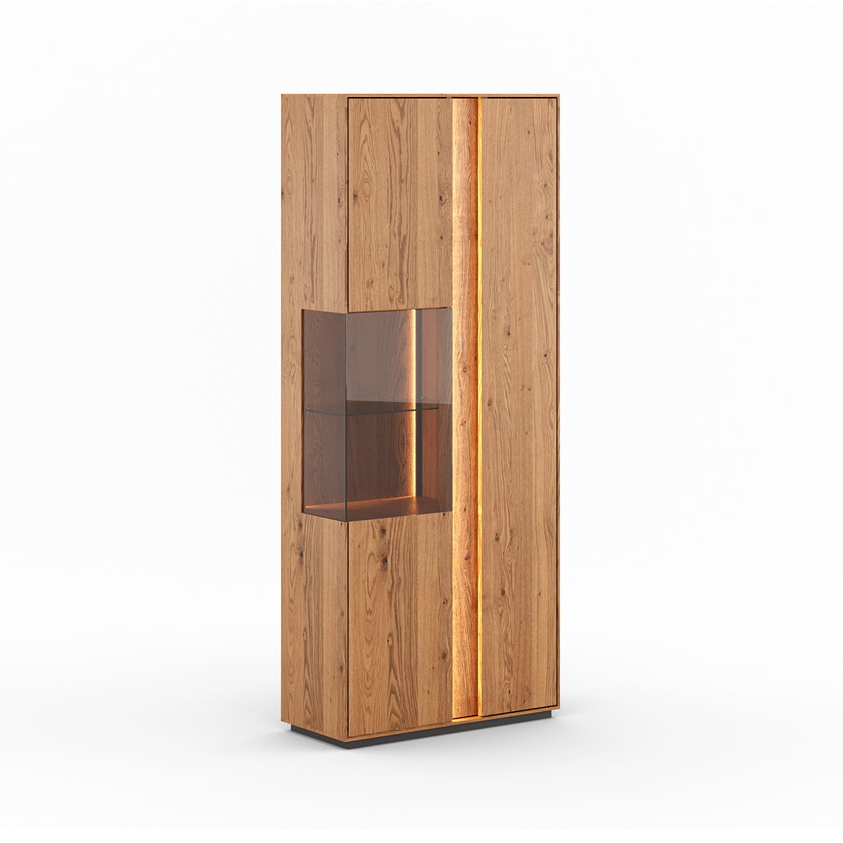 Kvalita vitríny nám ukazuje, že ide o špičkový výrobok. Použitie olejovaného divokého duba nielenže zdôrazňuje estetiku výrobku, ale zaručuje aj jeho trvanlivosť. Proces olejovania navyše posilňuje prirodzenú štruktúru dreva, čo znamená, že kus nábytku si zachová svoj pôvodný vzhľad po mnoho rokov. Moderný dizajn a starostlivé spracovanie podčiarkujú kompetentnosť výrobcu a jeho zmysel pre detail.