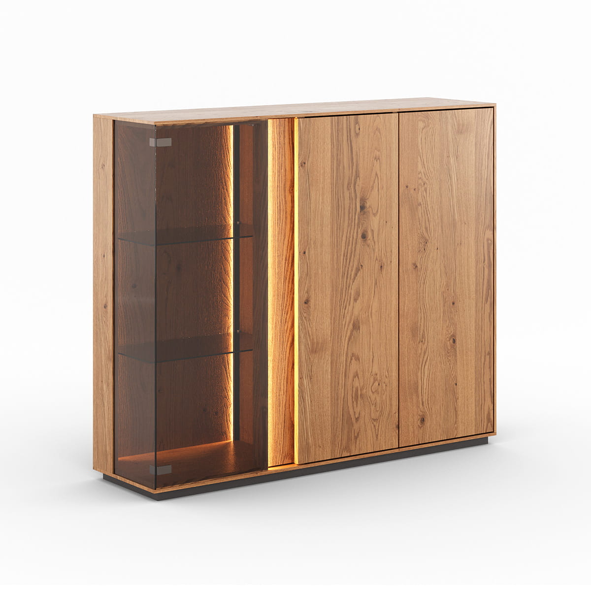 Nízka vitrína 3D s presklením z masívu dubu Collodi