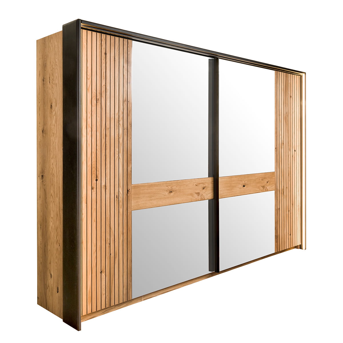 Veľká dubová posuvná skriňa so zrkadlom Pianoli