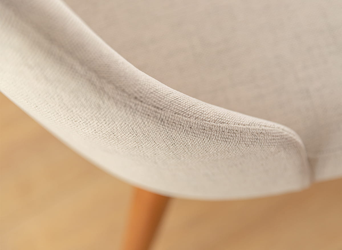Čalúnená stolička je potiahnutá kvalitným materiálom, látkou o gramáži 380 g/m2, zaisťujúcim vysokú odolnosť proti oderu. Vďaka tomu bude po mnohých rokoch vyzerať rovnako dobre ako v deň, keď ste ju kúpili. Látka sa tiež ľahko udržuje v čistote. Sedák stoličky je vyplnený podložkou na čalúnenie a polyuretánovou penou o tvrdosti T-35.
