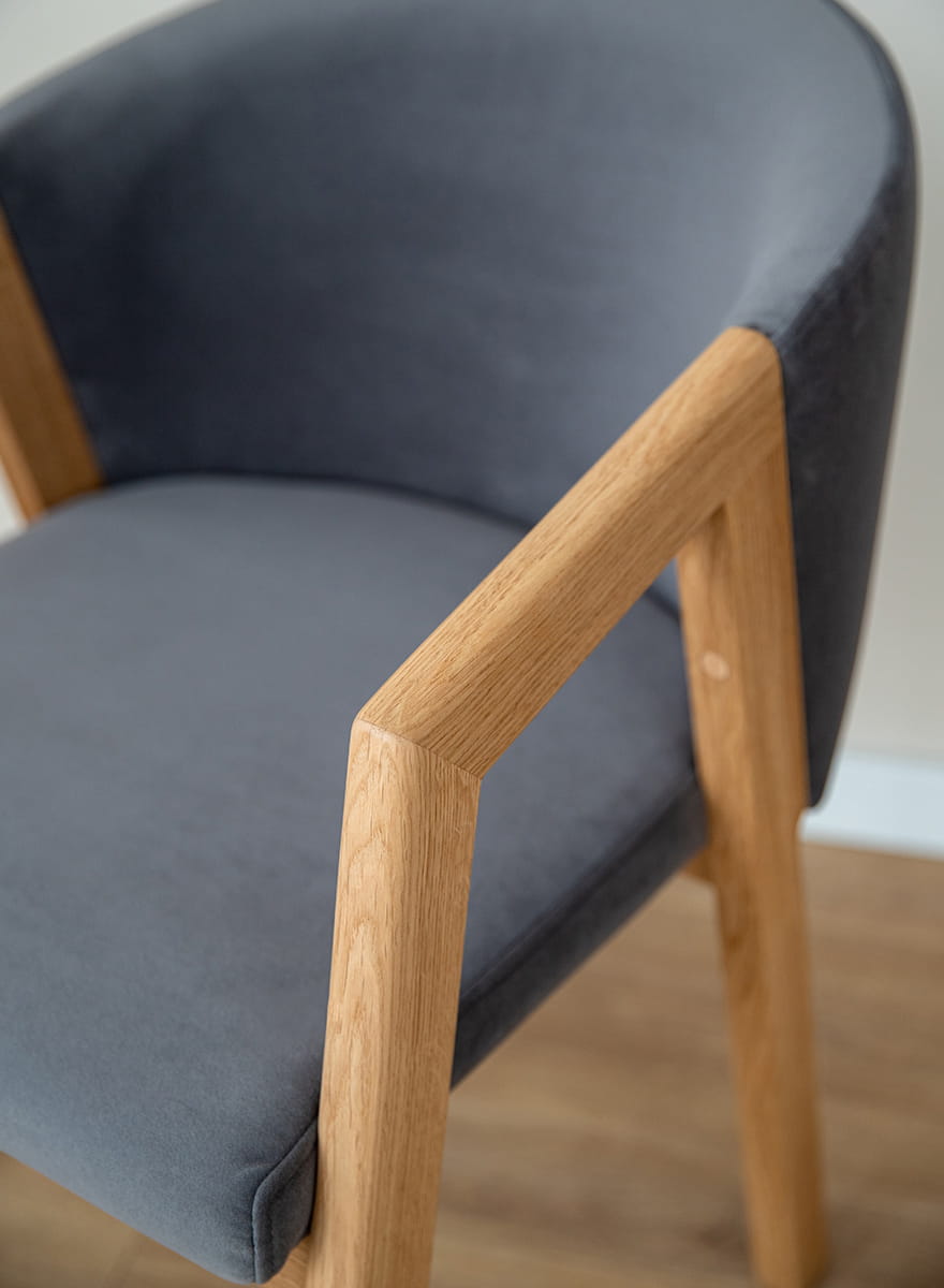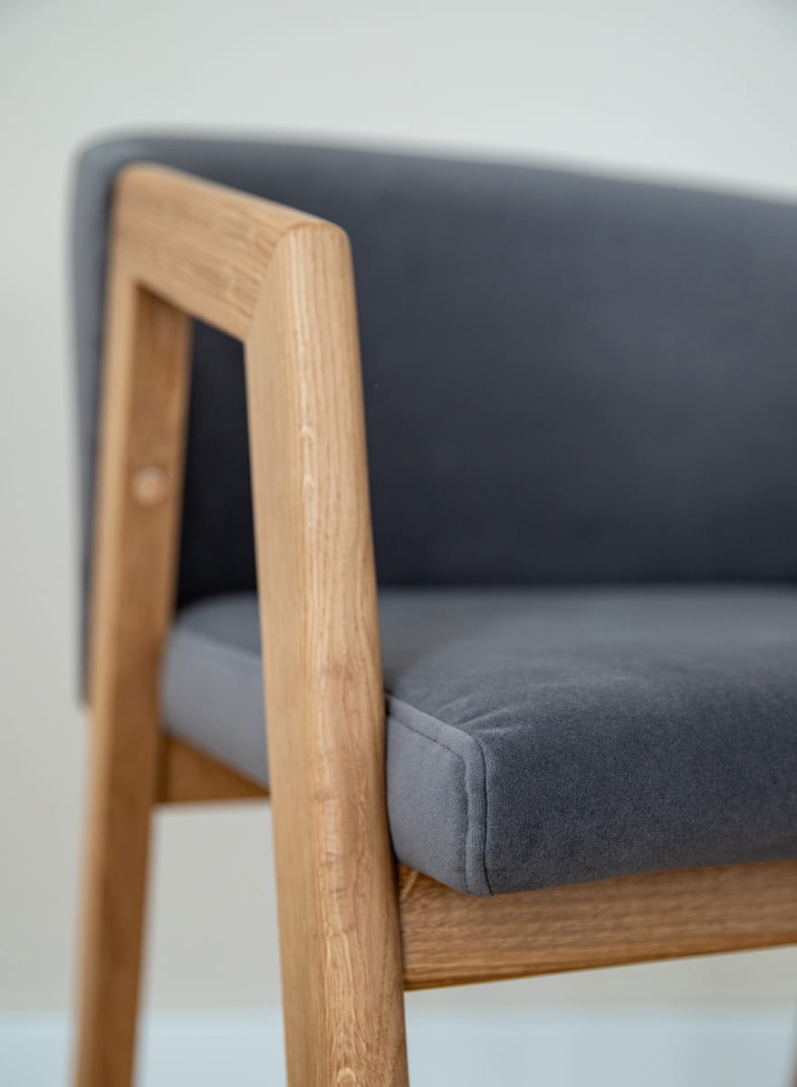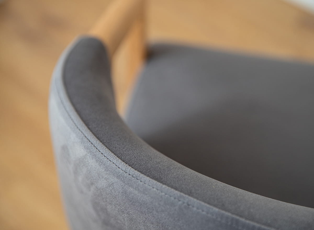 Čalúnená stolička Avelina 9852 FORIO s drevenými nohami spája estetiku s praktickosťou. Ergonomicky tvarované sedadlo a operadlo zaisťujú maximálne pohodlie aj pri dlhom sedení. Vysoké nohy, ktoré zároveň slúžia ako opierky na ruky, nielenže obohacujú vzhľad stoličky, ale zvyšujú aj jej funkčnosť, vďaka čomu sa dá ľahko prispôsobiť rôznym typom stolov. Táto stolička je ideálnou voľbou pre tých, ktorí si cenia estetické aj praktické aspekty nábytku. Grafitová farba je štýlovo skombinovaná s teplým odtieňom dreva a toto farebné duo je nadčasové a nikdy nevyjde z módy.