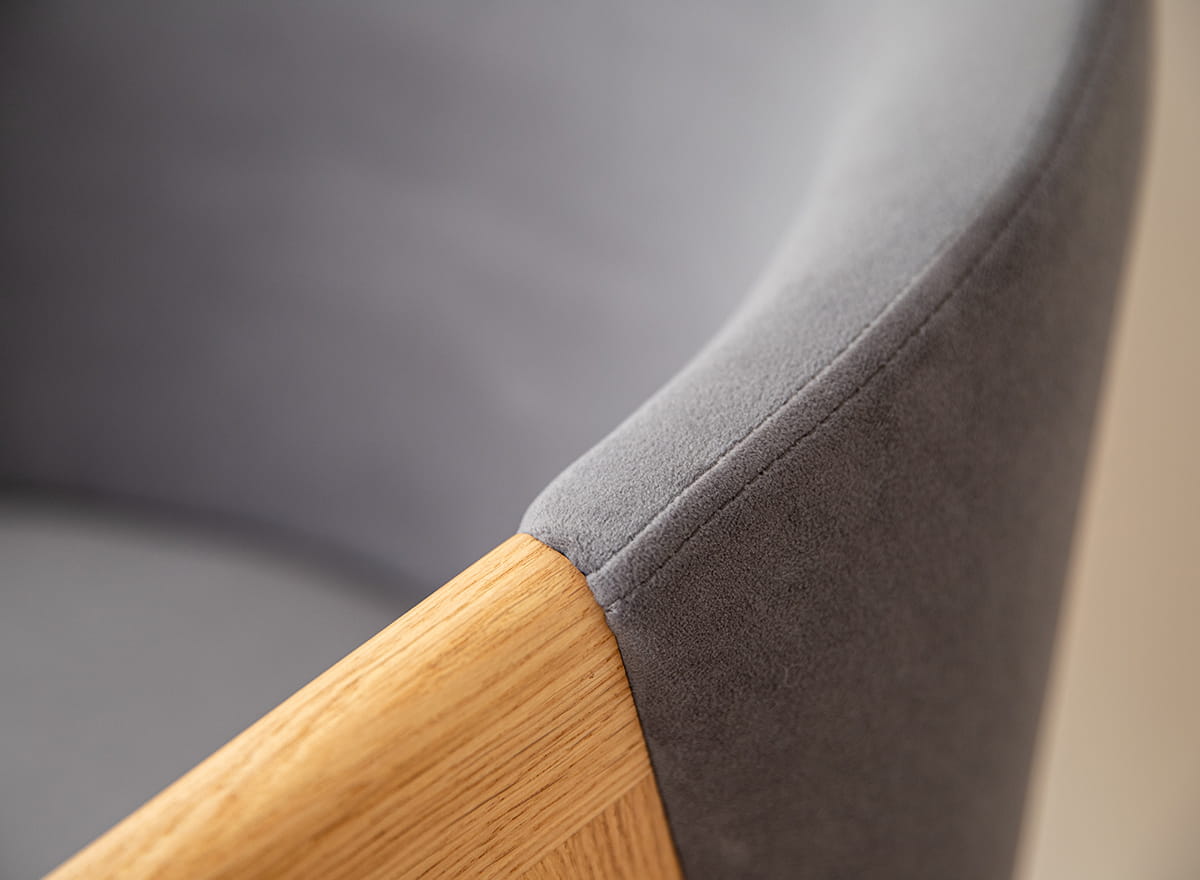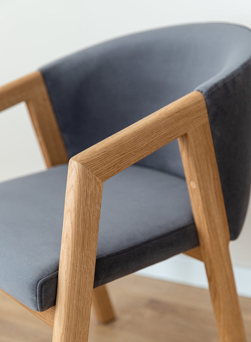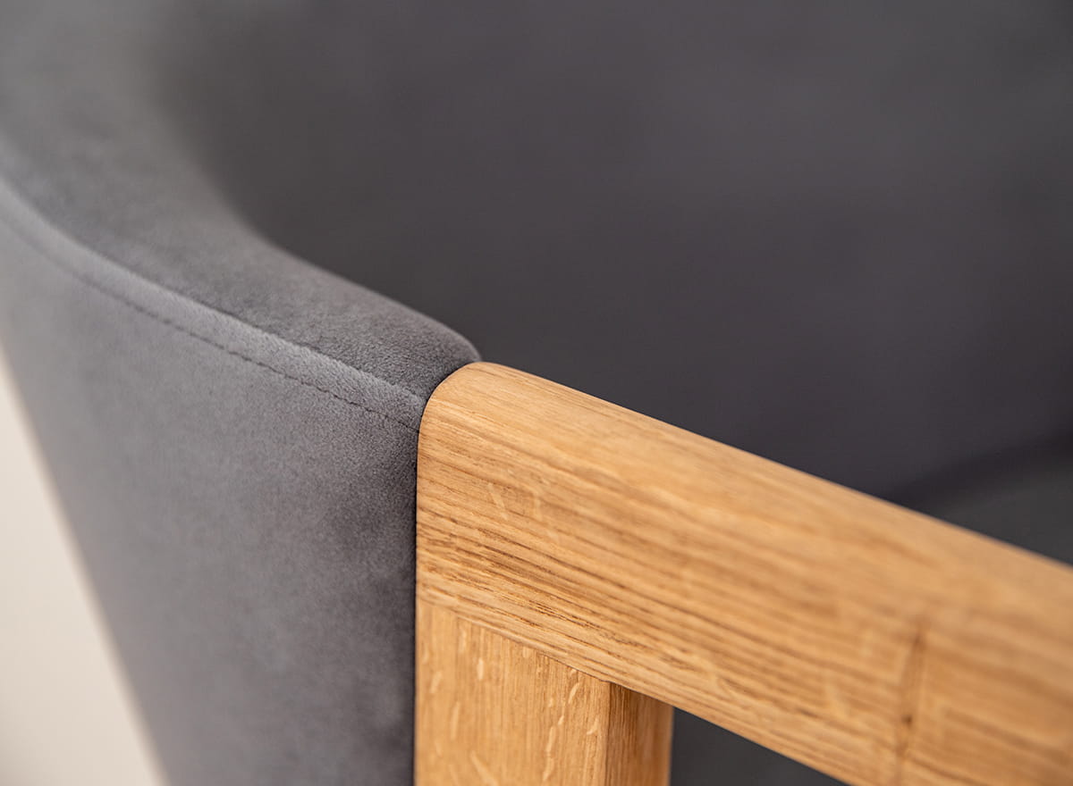 Čalúnená stolička Avelina 9852 FORIO s drevenými nohami spája estetiku s praktickosťou. Ergonomicky tvarované sedadlo a operadlo zaisťujú maximálne pohodlie aj pri dlhom sedení. Vysoké nohy, ktoré zároveň slúžia ako opierky na ruky, nielenže obohacujú vzhľad stoličky, ale zvyšujú aj jej funkčnosť, vďaka čomu sa dá ľahko prispôsobiť rôznym typom stolov. Táto stolička je ideálnou voľbou pre tých, ktorí si cenia estetické aj praktické aspekty nábytku. Grafitová farba je štýlovo skombinovaná s teplým odtieňom dreva a toto farebné duo je nadčasové a nikdy nevyjde z módy.