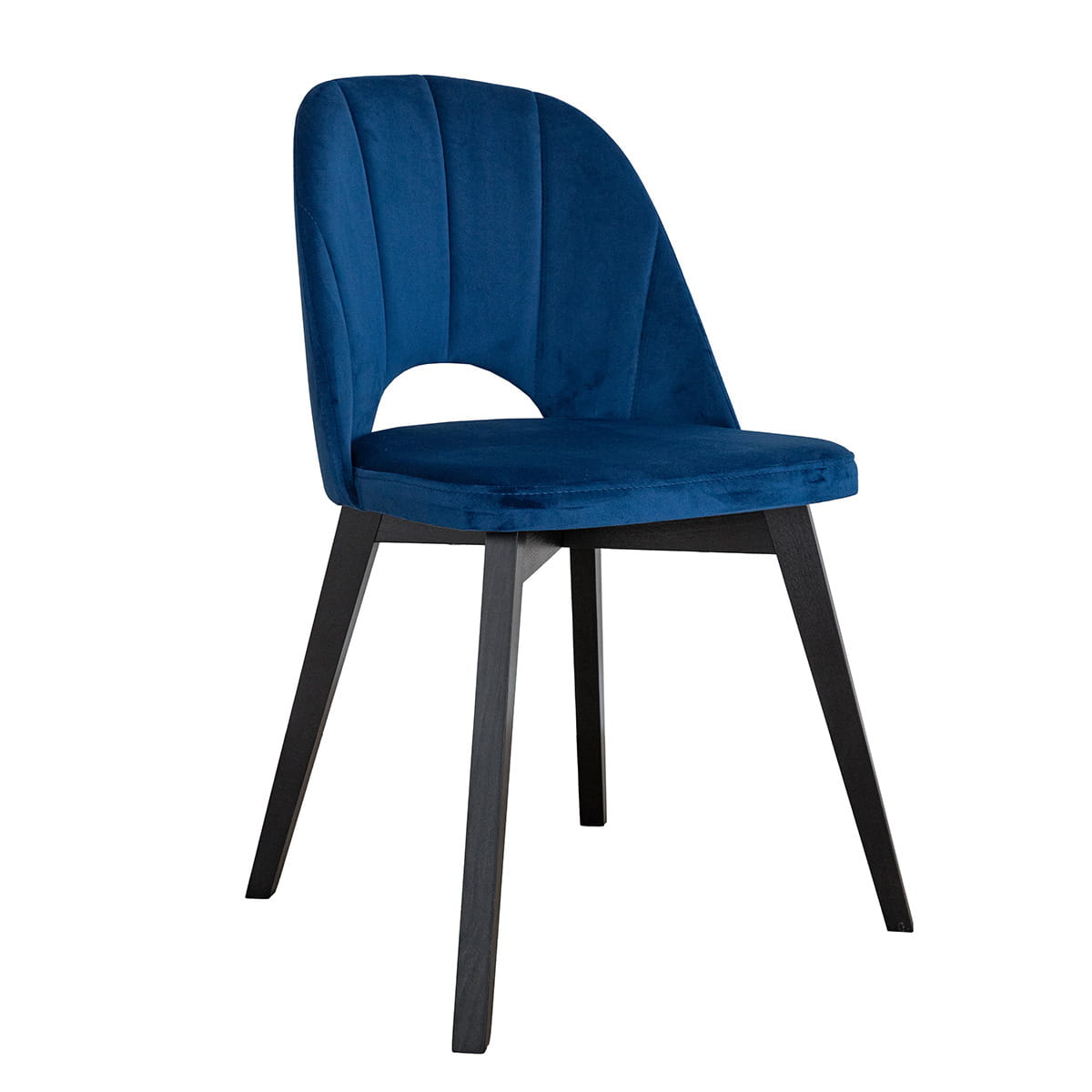 Stolička čalúnená tmavomodrá s čiernymi drevenými nohami RIV81 Breno