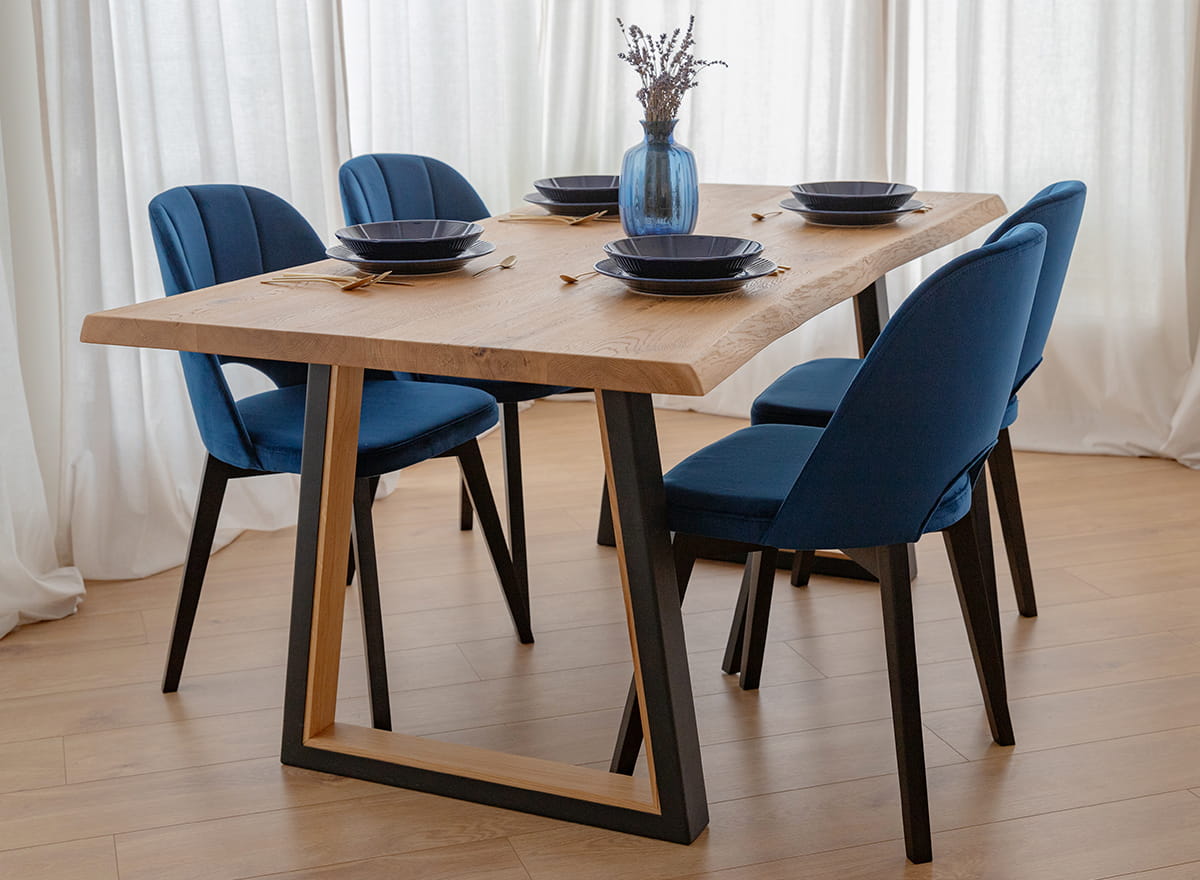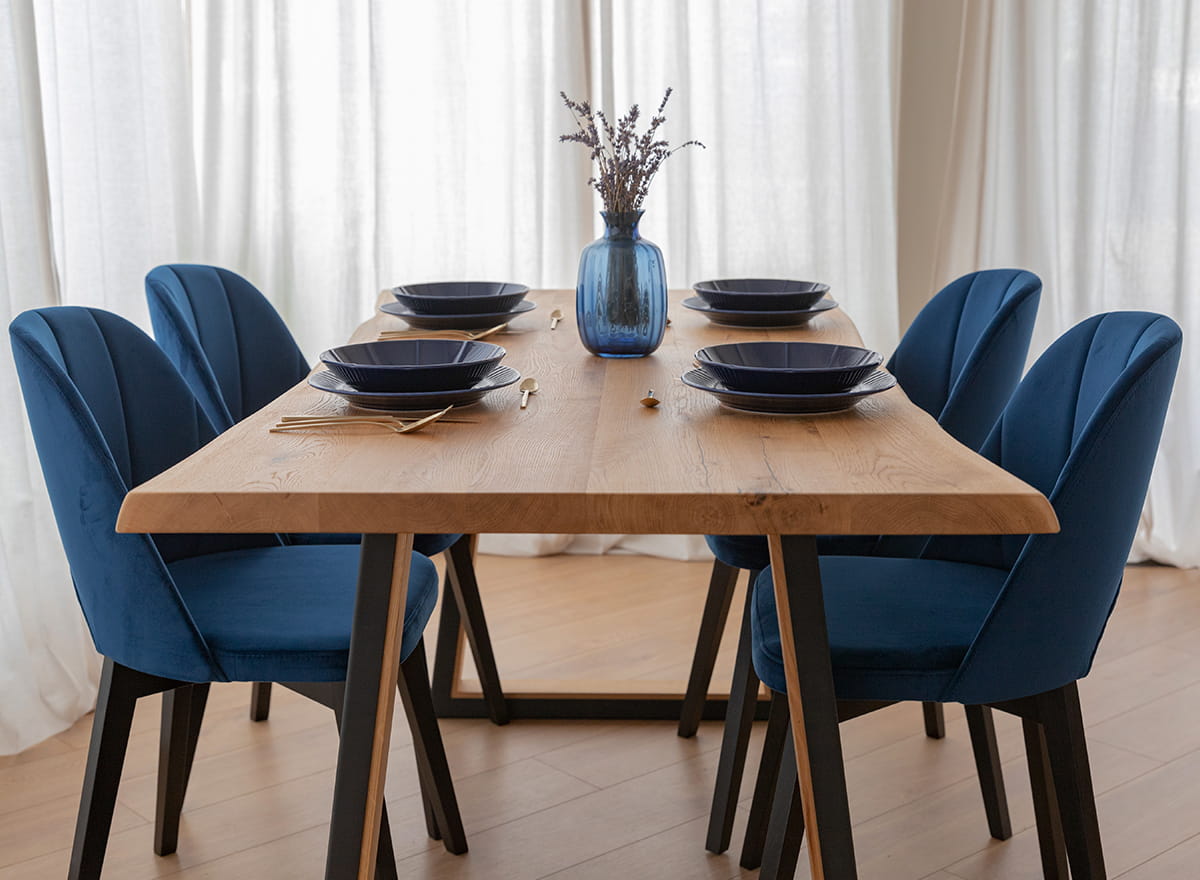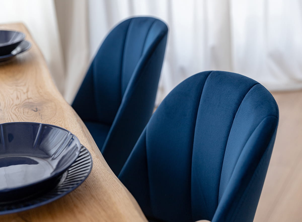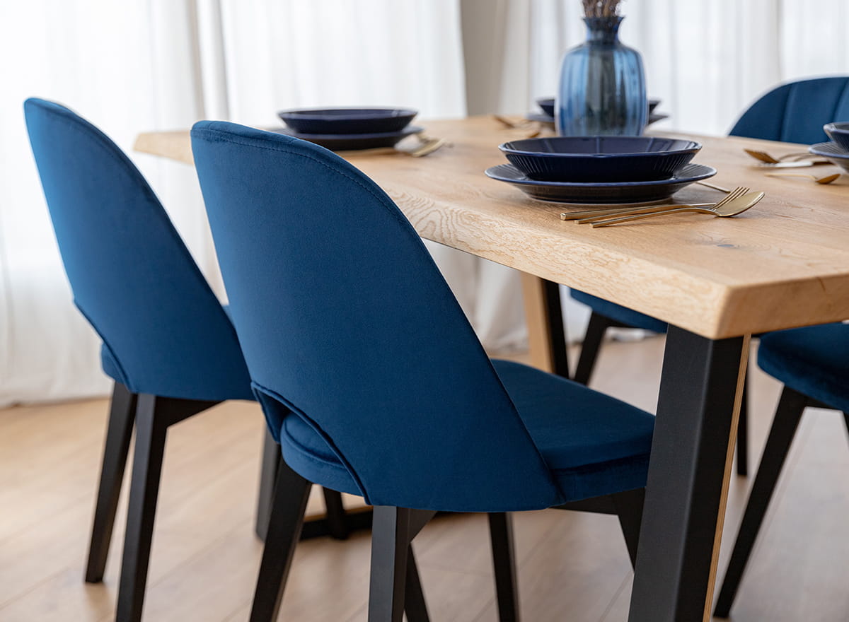Tu prezentovaná stolička Breno sa od ostatných odlišuje tmavomodrým velúrovým čalúnením, ktoré dodá eleganciu každému interiéru. Jeho dizajn je premyslene navrhnutý tak, aby sa hodil do rôznych prostredí - od moderných až po tie s nádychom glamour. Vizuálna ľahkosť dosiahnutá úzkymi nohami z čierneho bukového dreva spôsobuje, že kreslo pôsobí ako jemný, ale výrazný a nápadný akcent v priestore. Jemný lesk velúru Riviera 81 upúta pozornosť a zároveň dodá interiéru sofistikovaný nádych.