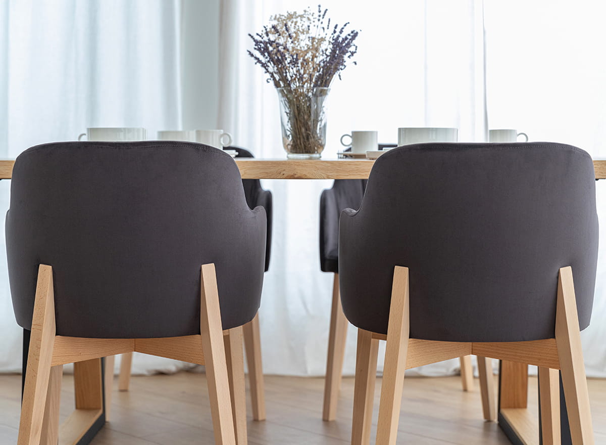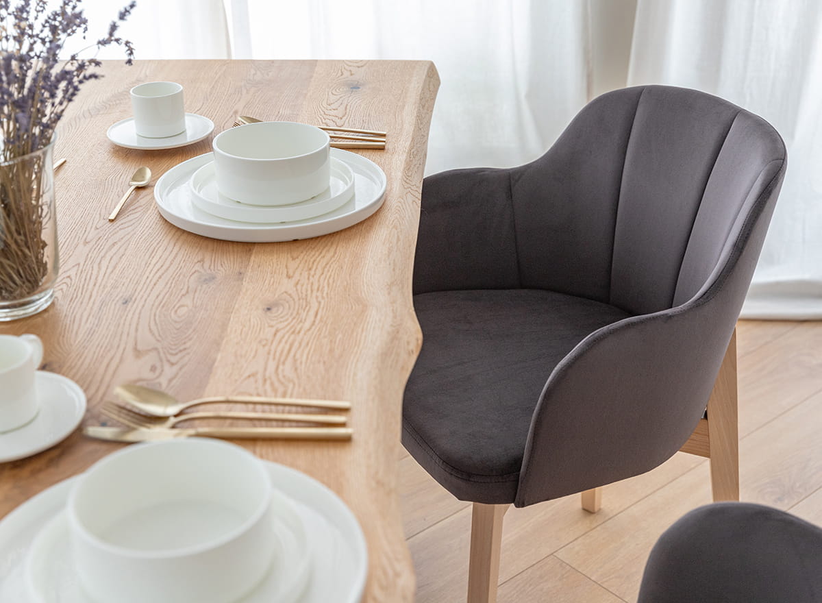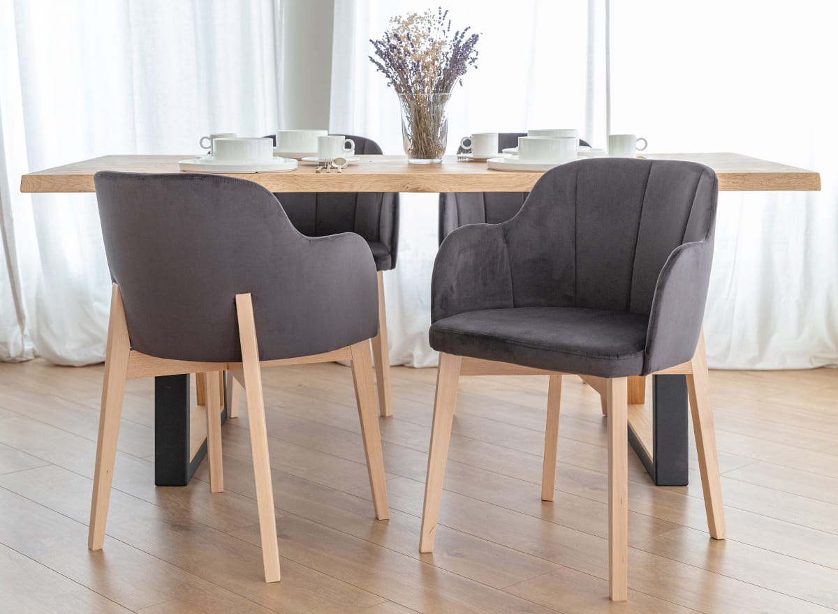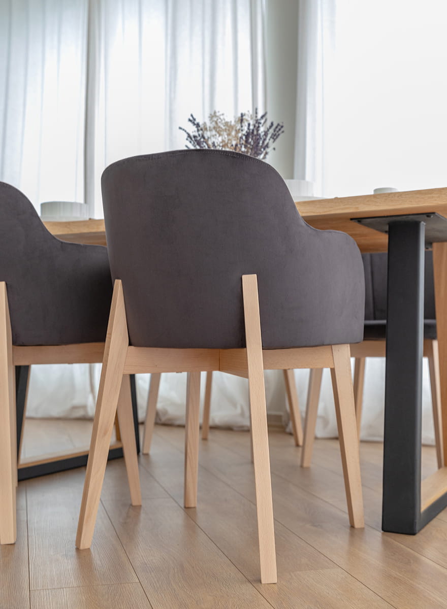 Stolička Fondo je stelesnením minimalistického dizajnu a jeho kombinácie s funkčnosťou. Sivá zamatová tkanina, ktorá sa na svetle leskne svojou štruktúrou, prináša do interiérov príjemnú textúru, ktorá ladí s prírodnými dekoratívnymi prvkami a rôznymi štýlmi - od moderných až po klasické aranžmány. Ľahká konštrukcia a štíhle nohy zo svetlého bukového dreva zdôrazňujú estetickú rovnováhu, vďaka čomu je kreslo ideálne do priestorov, kde má dizajn podporiť pocit priestrannosti.