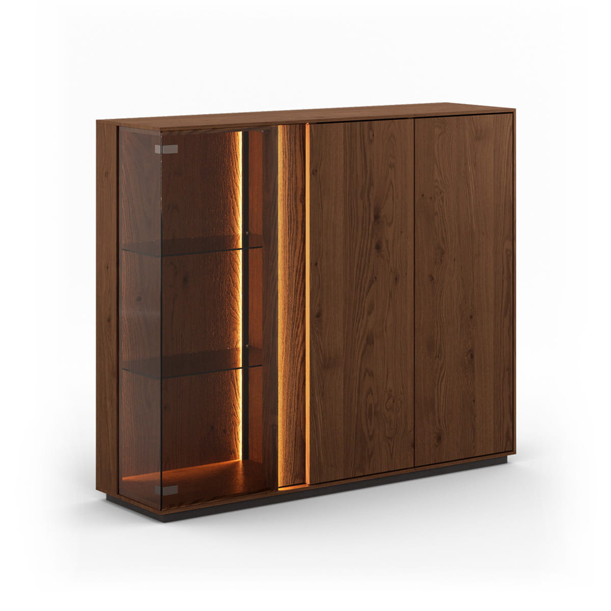 Dubová nízka trojitá vitrína s osvetlením tabaková Collodi
