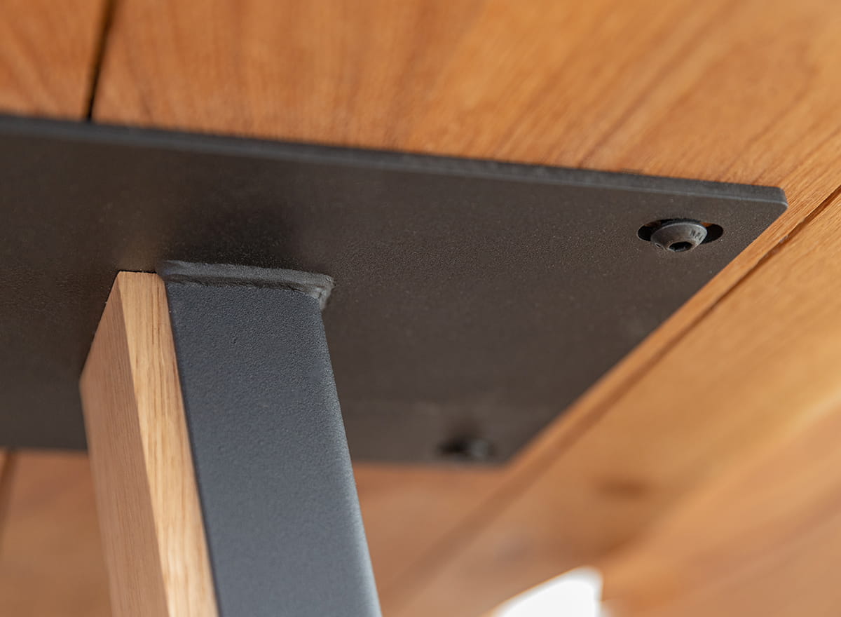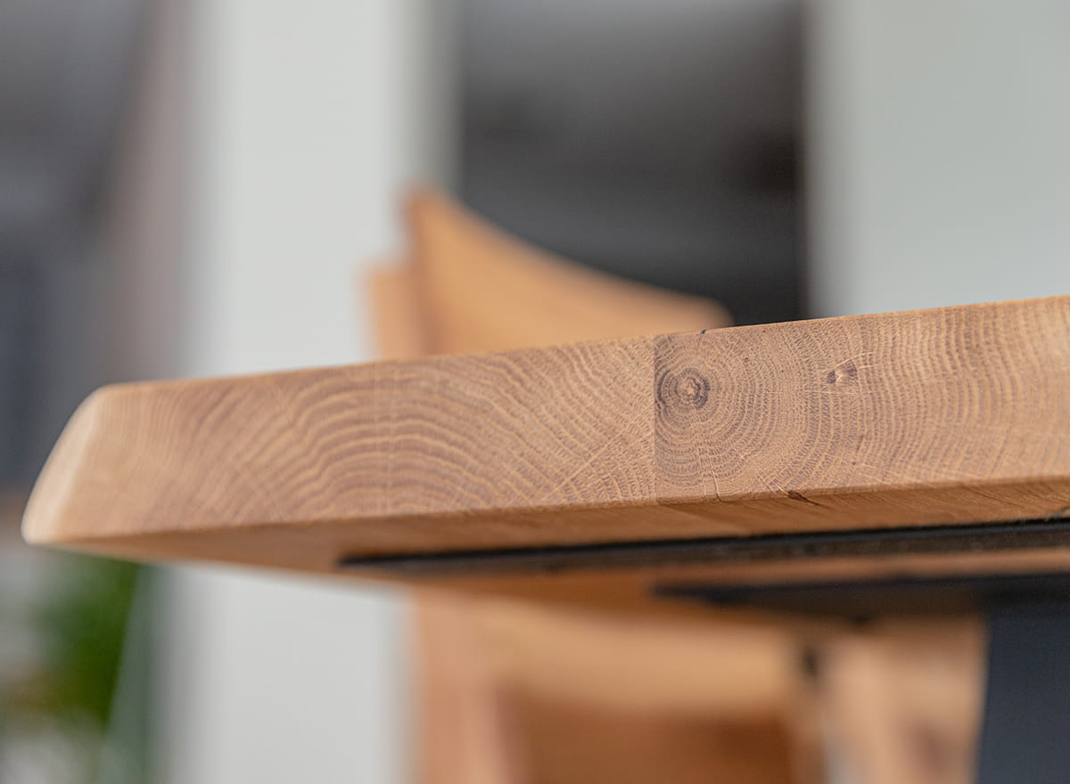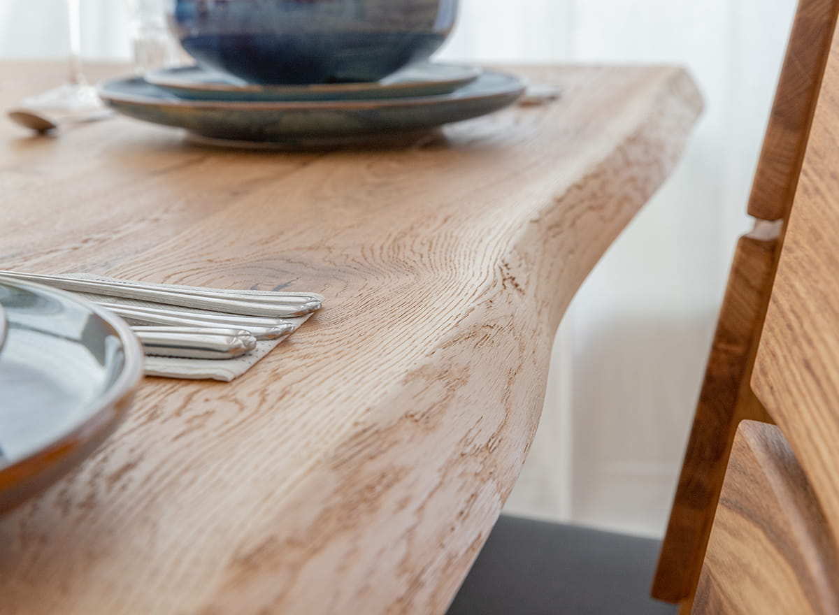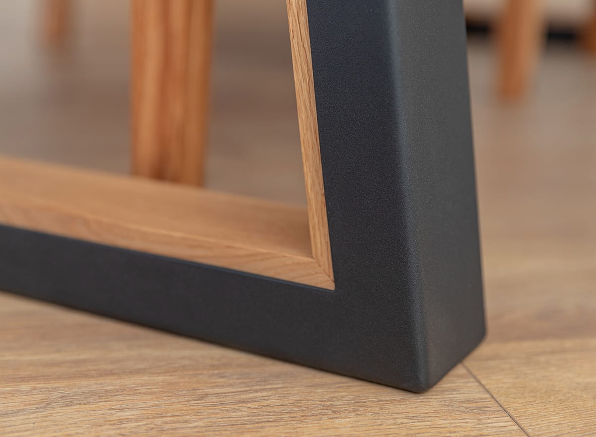 Aby sa zachoval čo najprirodzenejší vzhľad, dubové drevo sa naolejovalo. Vosk na drevo, ktorý sa potom naniesol, poskytol ďalšiu ochrannú vrstvu na povrchu nábytku. Minimalistická povrchová úprava stola má za následok krásnu kresbu a súkna, ktoré je možné vidieť na jeho povrchu. Bude ozdobou rustikálnych a loftových interiérov, ako aj miestností v škandinávskom štýle, ktoré kladú dôraz na masívny drevený nábytok. Stôl má rozmery 90x180 cm. Hrúbka vrchnej dosky je 4 cm.
