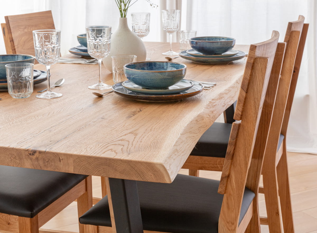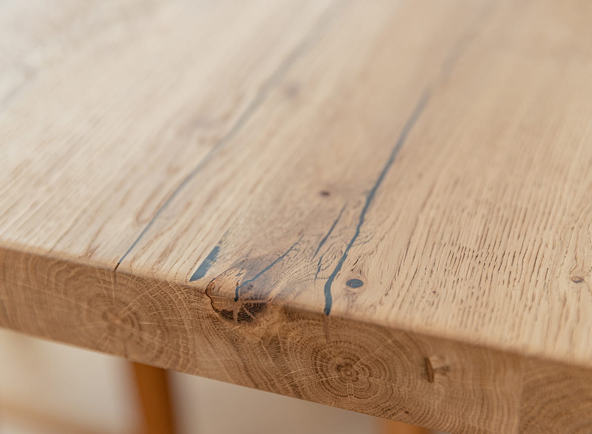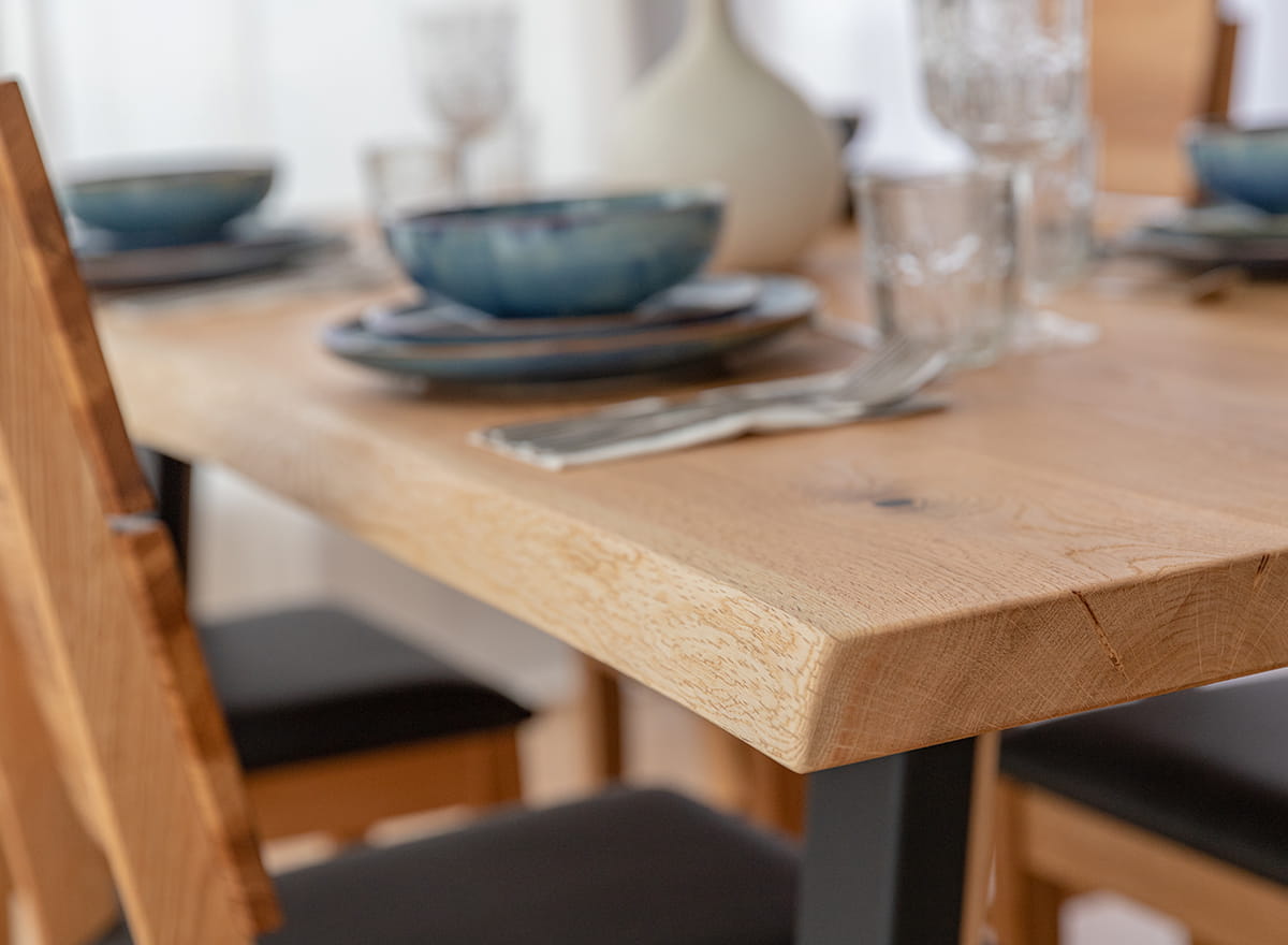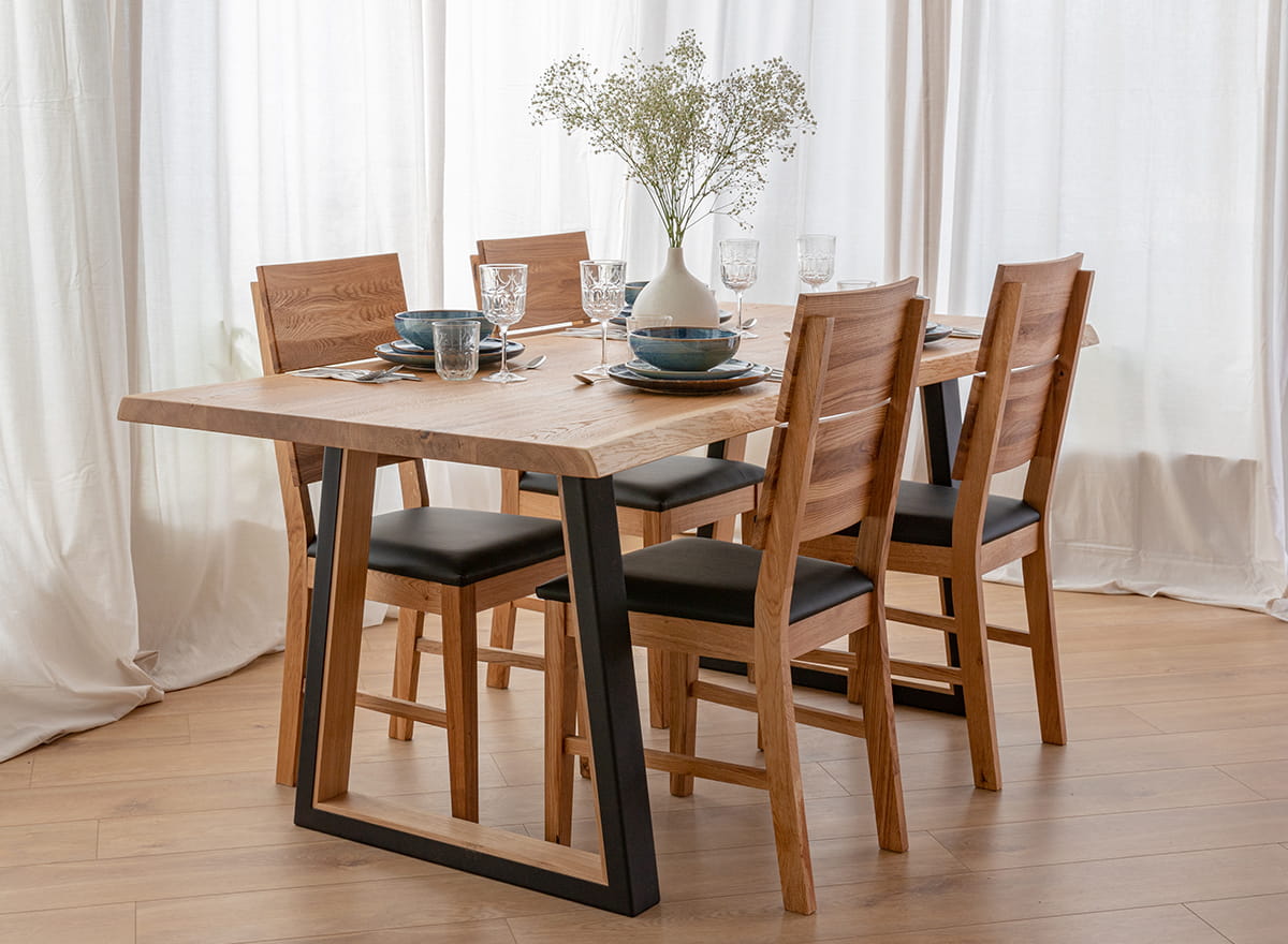 Aby sa zachoval čo najprirodzenejší vzhľad, dubové drevo sa naolejovalo. Vosk na drevo, ktorý sa potom naniesol, poskytol ďalšiu ochrannú vrstvu na povrchu nábytku. Minimalistická povrchová úprava stola má za následok krásnu kresbu a súkna, ktoré je možné vidieť na jeho povrchu. Bude ozdobou rustikálnych a loftových interiérov, ako aj miestností v škandinávskom štýle, ktoré kladú dôraz na masívny drevený nábytok. Stôl má rozmery 90x180 cm. Hrúbka vrchnej dosky je 4 cm.