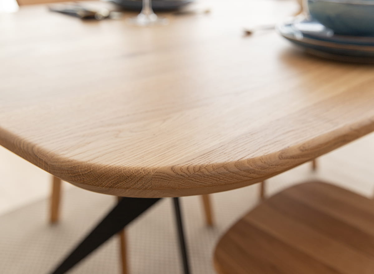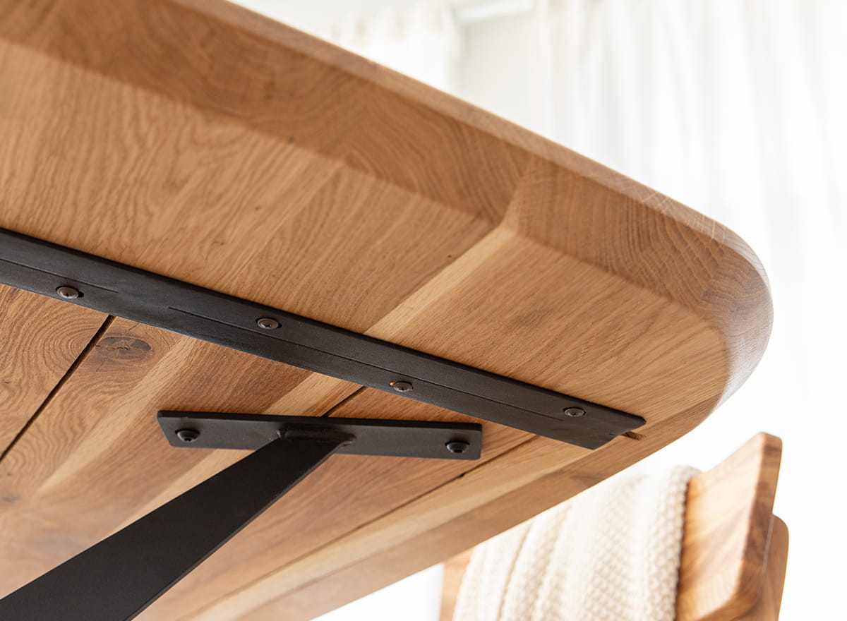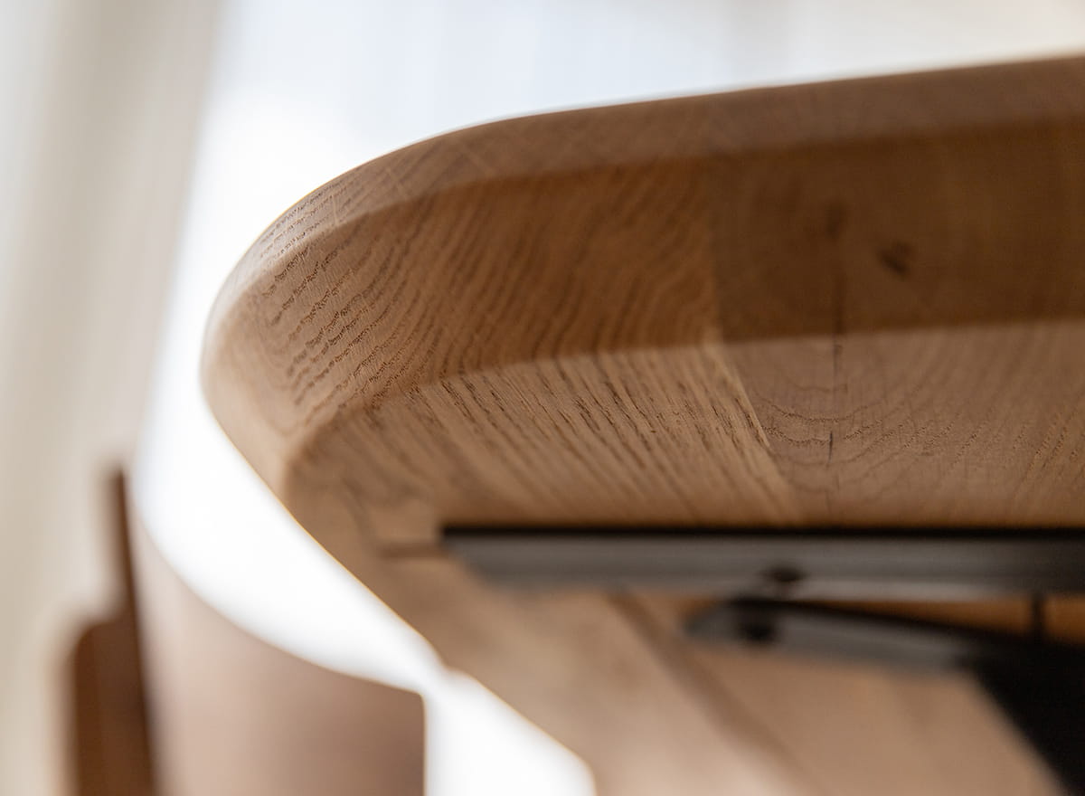 Predstavený oválny stôl Loft je odpoveďou na očakávania moderných zákazníkov. Je stabilný, pevný a odolný, pričom všetky spoje a konštrukčné prvky sú navrhnuté s najvyššou možnou presnosťou. Výsledkom je, že stôl sa nekýve je stabilný bez toho, aby vydával aj nepríjemné zvuky. Stolová doska, ktorá je oveľa hrubšia, ako je štandard na trhu (až 4 cm), má skosené hrany a je celá vyrobená z olejovaného dubového dreva. Náter je odolný voči väčšine poškodení a blokuje vnikanie väčšiny nečistôt do štruktúry dreva.