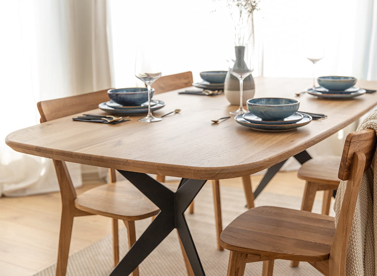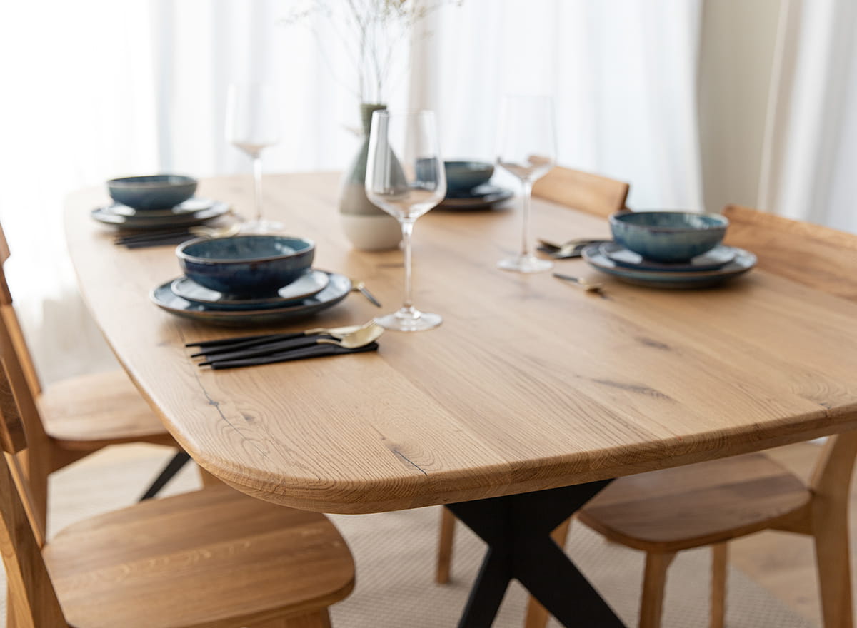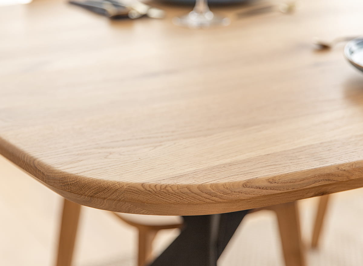 Predstavený oválny stôl Loft je odpoveďou na očakávania moderných zákazníkov. Je stabilný, pevný a odolný, pričom všetky spoje a konštrukčné prvky sú navrhnuté s najvyššou možnou presnosťou. Výsledkom je, že stôl sa nekýve je stabilný bez toho, aby vydával aj nepríjemné zvuky. Stolová doska, ktorá je oveľa hrubšia, ako je štandard na trhu (až 4 cm), má skosené hrany a je celá vyrobená z olejovaného dubového dreva. Náter je odolný voči väčšine poškodení a blokuje vnikanie väčšiny nečistôt do štruktúry dreva.