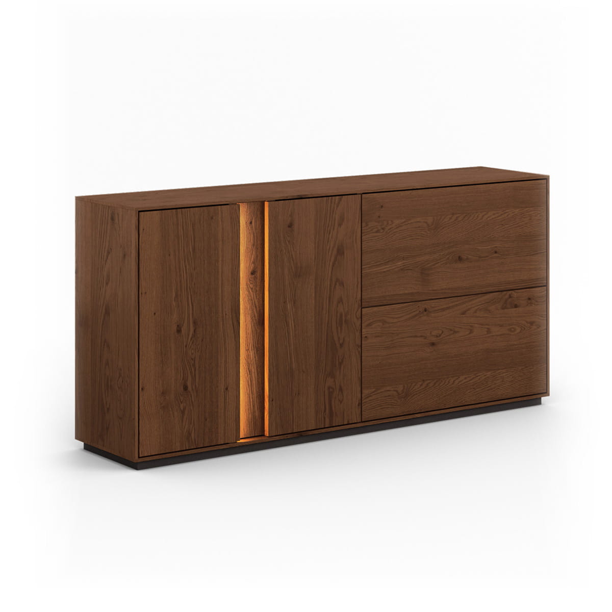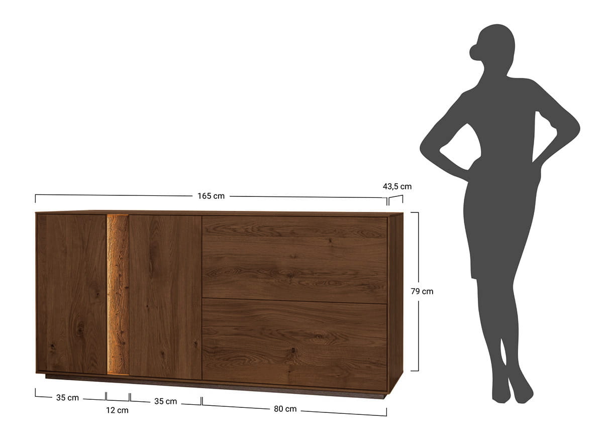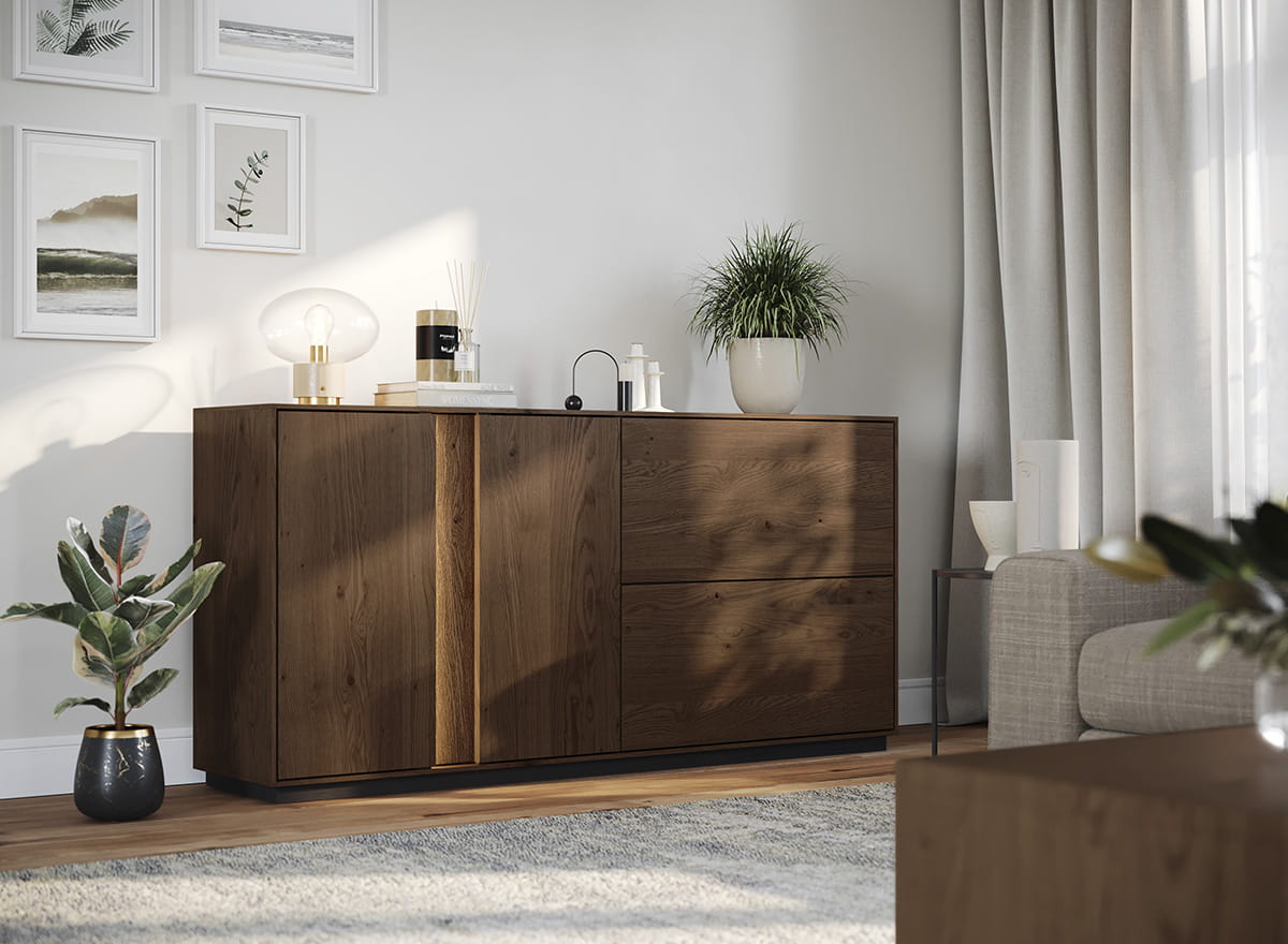 Praktickosť? Komoda Collodi nie je len o dizajne, ale aj o pohodlí. Priestranné skrinky a objemné zásuvky pojmú všetko - oblečenie, dokumenty aj domáce drobnosti. Integrované LED osvetlenie dotvára atmosféru interiéru a jemne zvýrazňuje jedinečnú štruktúru dreva. Či už ju umiestnite do obývačky, spálne alebo predsiene - komoda Collodi vždy dodá priestoru triedu, poriadok a teplo.