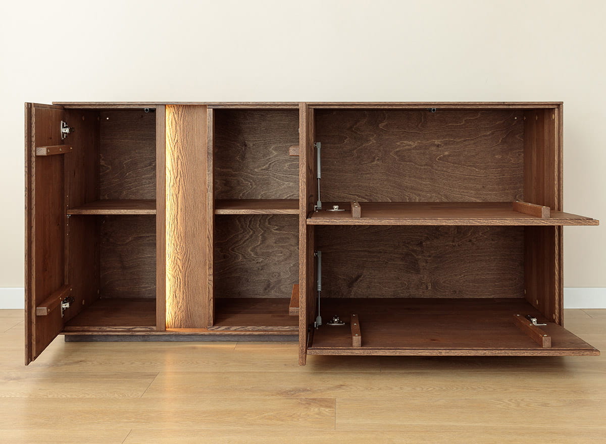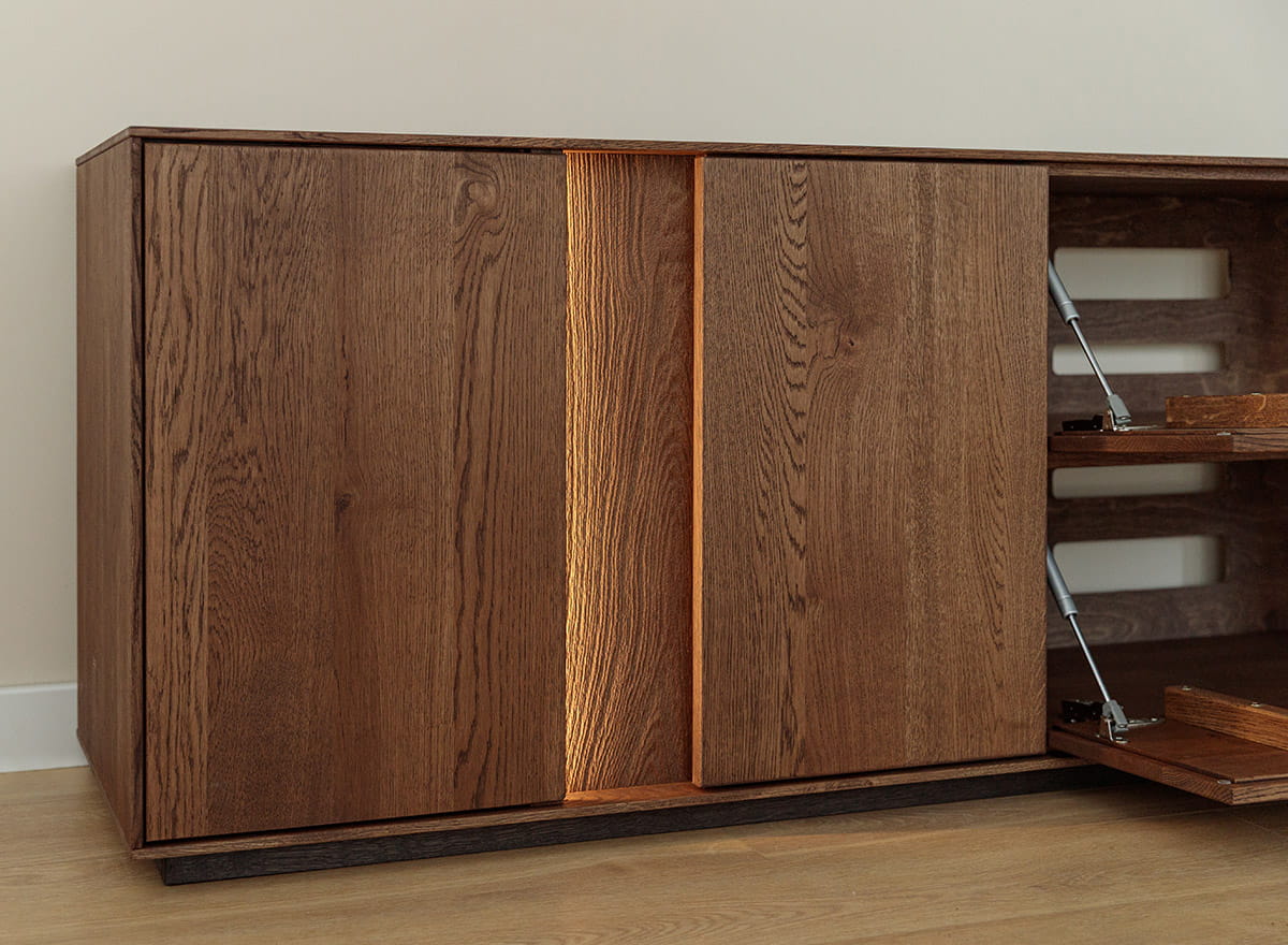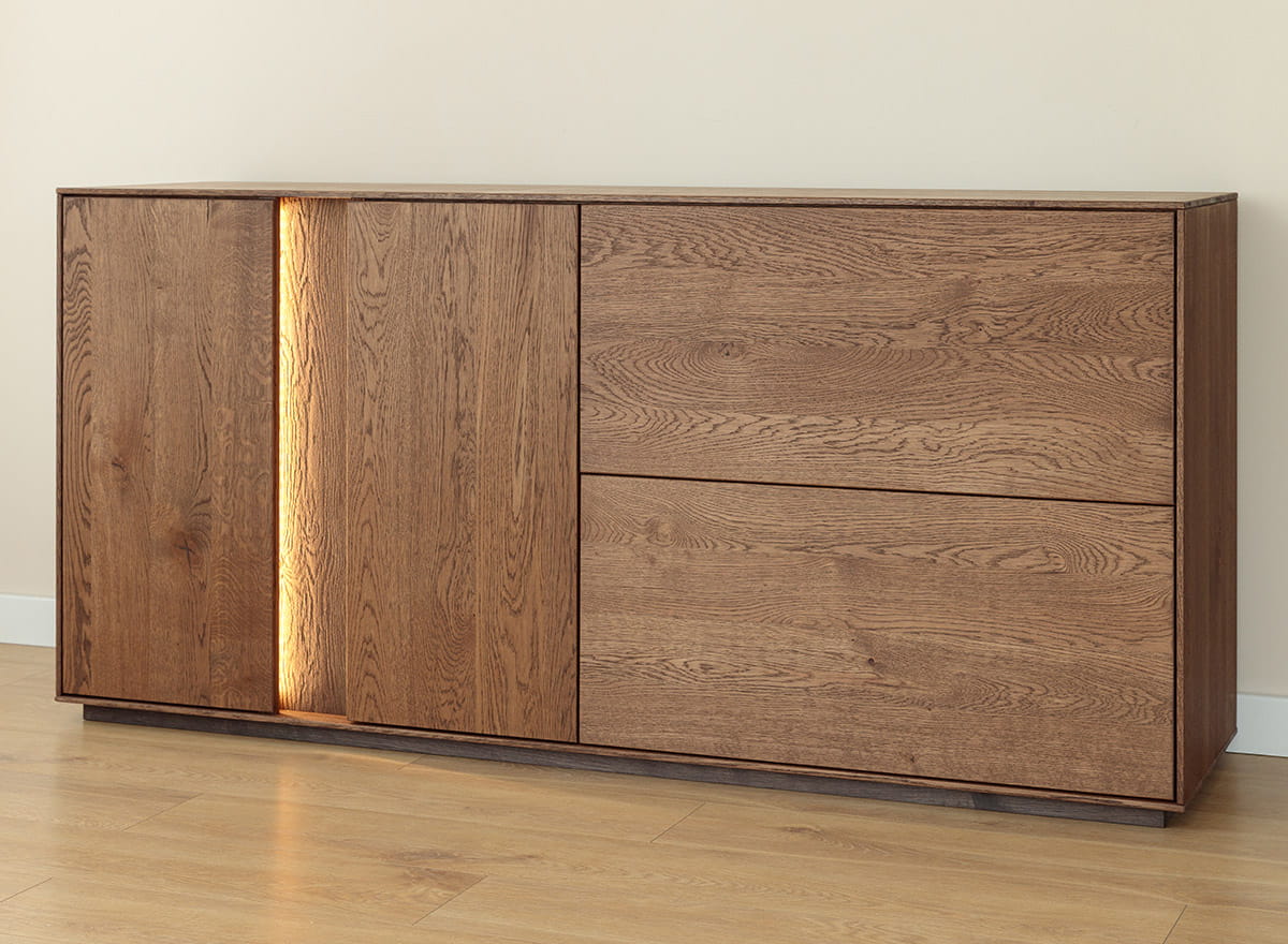 Komoda z naolejovaného dubového dreva s osvetlením Collodi Tabák - spoľahlivá kvalita na dlhé roky