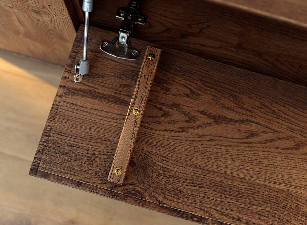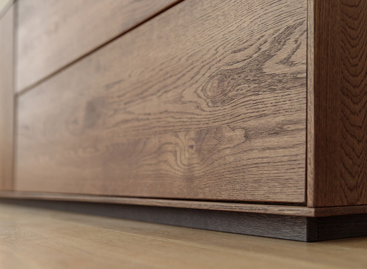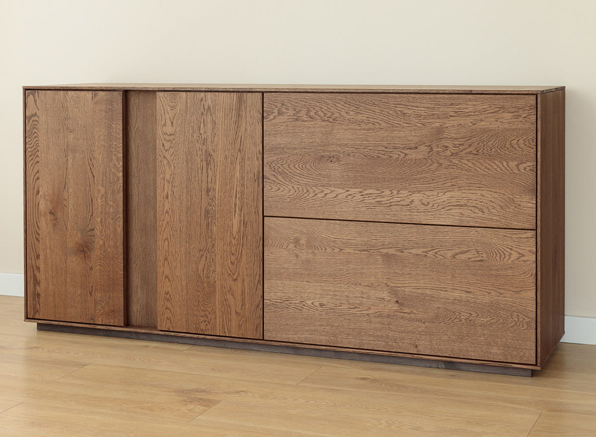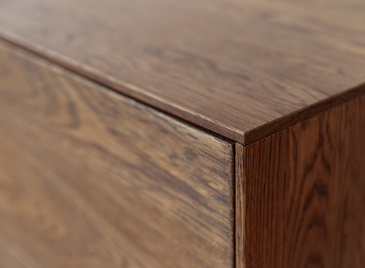 Dubové drevo je zárukou odolnosti a nadčasového štýlu. Každý detail - od precízne opracovaných hrán až po systém vyklápania - svedčí o remeselnej kvalite. Dvere sa otvárajú ľahkým dotykom, bez úchytiek a zbytočných doplnkov. Olejovaný povrch nielen zvýrazňuje krásu kresby, ale aj chráni drevo pred každodenným opotrebovaním. Stabilná konštrukcia zaručuje, že komoda zostane v perfektnom stave dlhé roky. Okrem toho vďaka dodaniu zmontovaného kusu nábytku ušetríte čas a nervy spojené s jeho zostavovaním a všetka spokojnosť s novou kúpou sa dostaví bez najmenšej námahy.