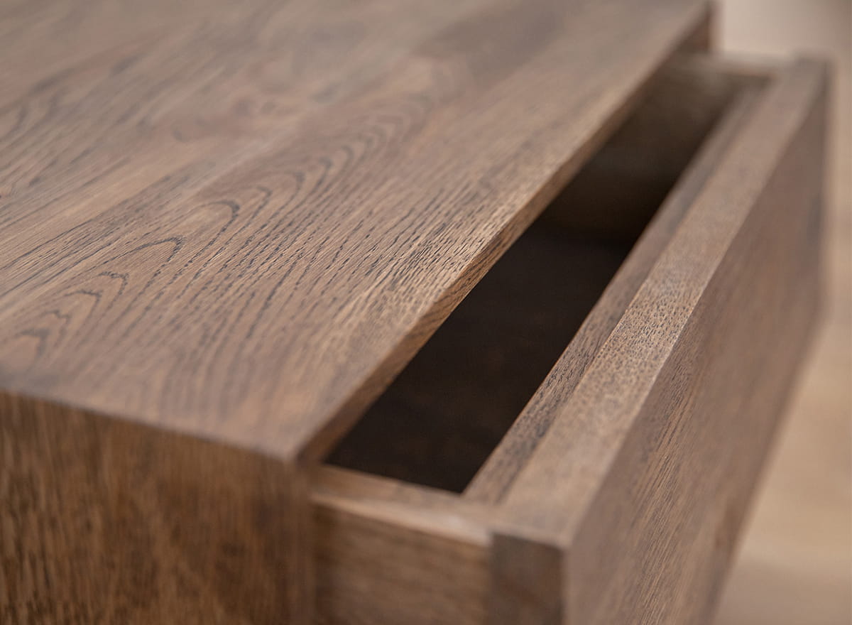 Štýlový nočný stolík z prírodného dymového dubu