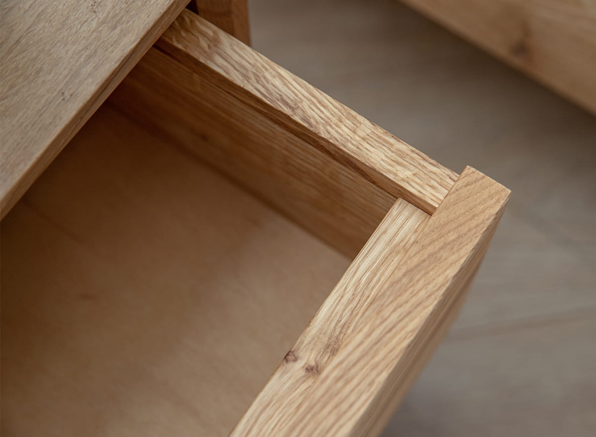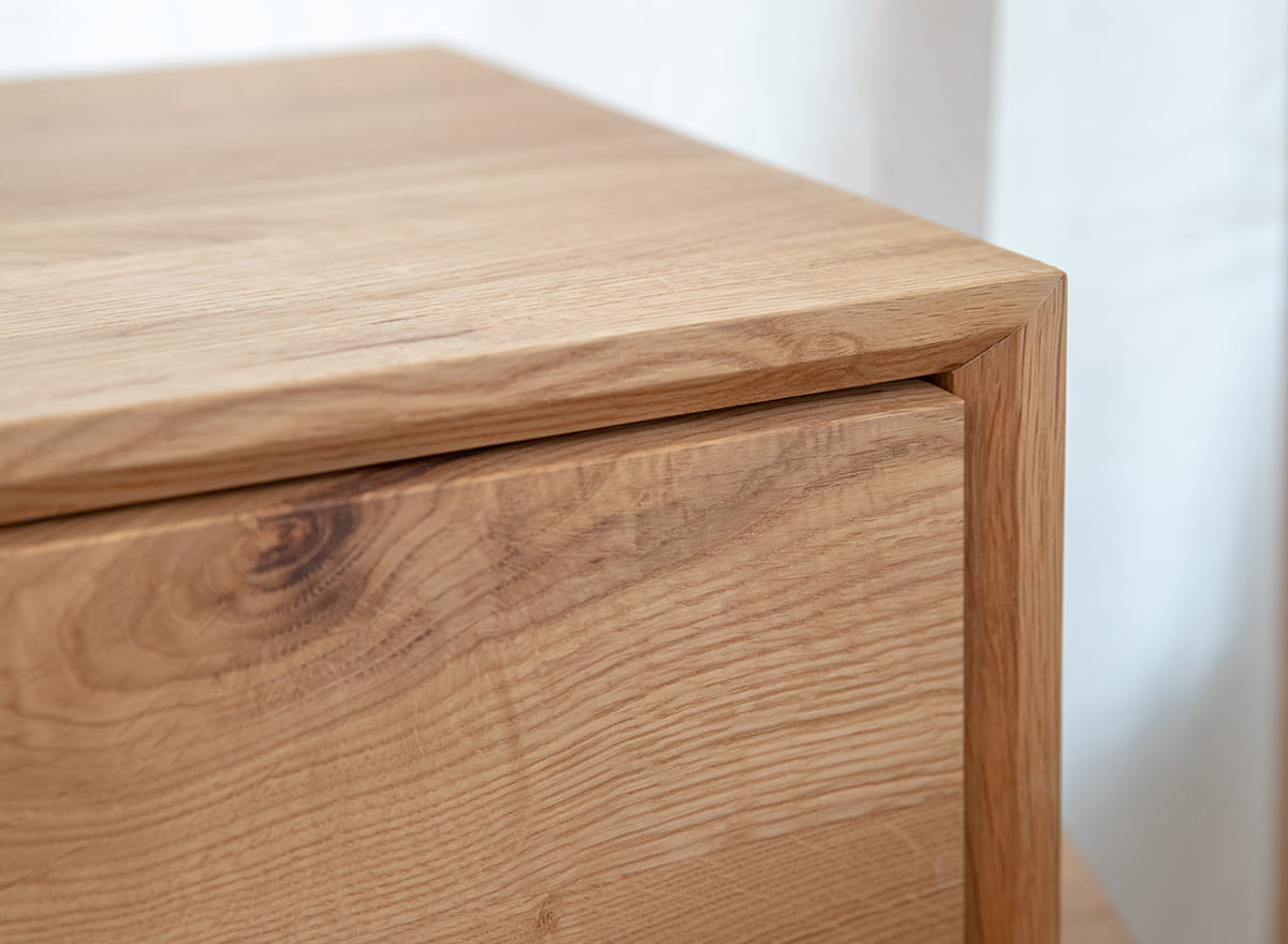 Nočný stolík ktorý je vyrobený z masívneho dubového dreva