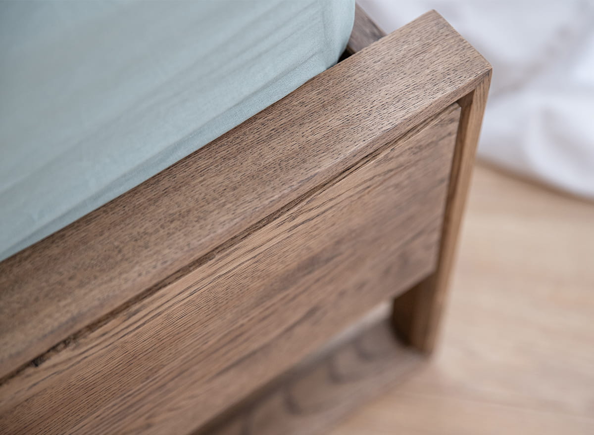 Drevená dubová posteľ v loftovom štýle plná výhod