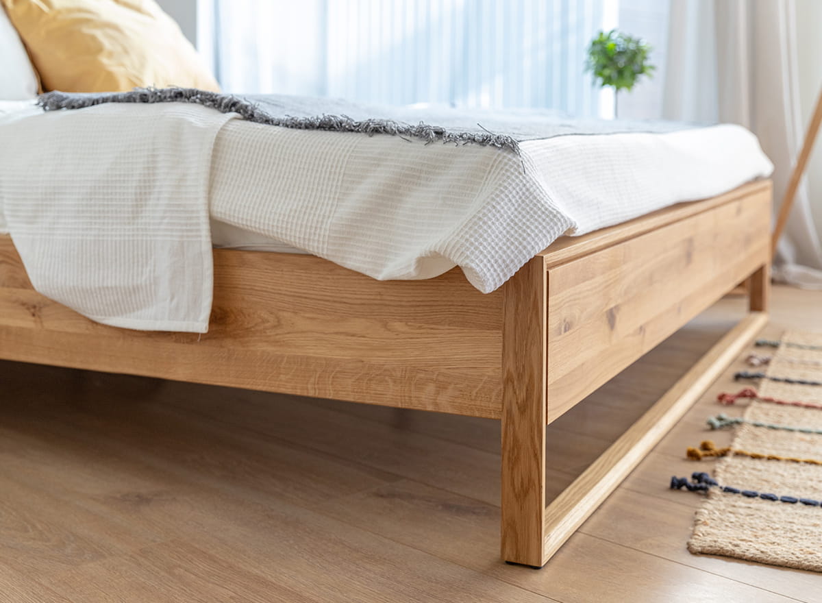 Drevená dubová posteľ, poskytujúca pohodlie a komfort