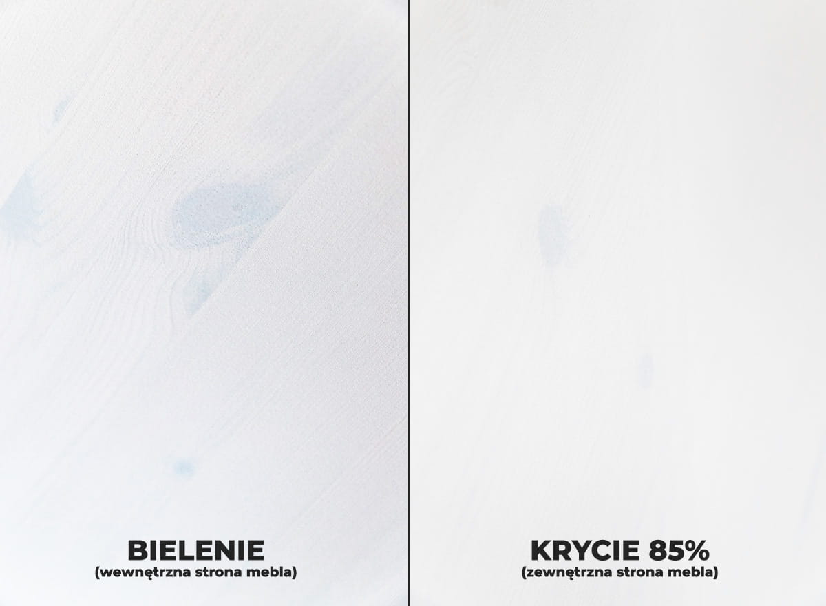 Pri výbere nábytku z bieleho borovicového dreva by ste mali brať do úvahy prirodzený proces starnutia a skutočnosť, že letokruhy a suky sa časom stávajú viditeľnejšími. Pri údržbe dreveného nábytku treba dbať na to, aby ste nepoužívali drsné utierky a kuchynské čistiace prostriedky, pretože môžu spôsobiť poškodenie alebo zmenu farby povrchu. Najlepšie je použiť vlhkú mäkkú handričku. Neodporúča sa vystavovať nábytok priamemu UV žiareniu ani ho umiestňovať do blízkosti vykurovacích zariadení. Nábytok sa dodáva v baleniach s návodom a príslušenstvom na samostatnú montáž. Nábytok vo vnútri je raz vybielený, vďaka čomu sú kresba zrna a drevené uzly viditeľnejšie ako na vonkajšej strane výrobku. V priebehu času môžu uzly získať intenzívnejšiu farbu, čo je prirodzený proces starnutia dreva.